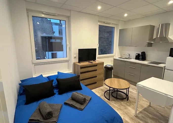 In Petit Cocon A 5 Min Du Marche De Noel Appartement is een complete keuken waar gasten hun eigengemaakte maaltijden kunnen bereiden. Palais des Fetes bushalte is op een paar stappen verwijderd van dit appartement.